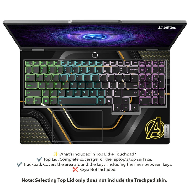 - Unique Aesthetic: Make a statement with the Avengers Gold Black Logo design, perfectly complementing the Lenovo LOQ's modern look.