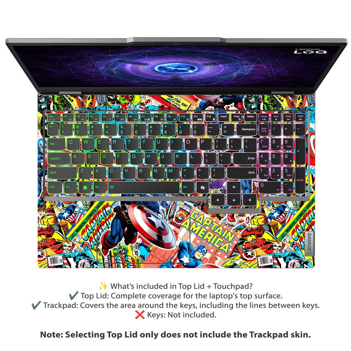 Upgrade your Lenovo LOQ with the Captain America Marvel Mix Laptop Skin today. Combining protection, personalization, and standout design, it's the perfect way to make your device truly yours!