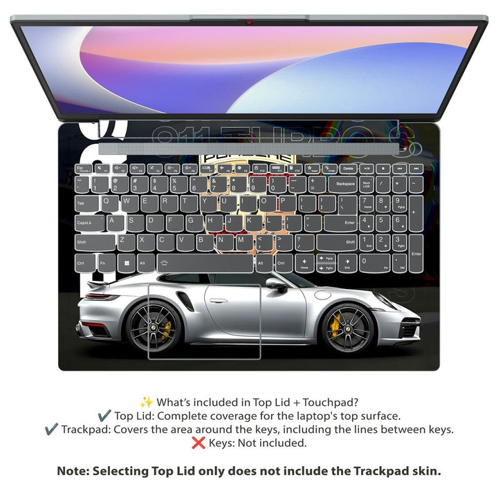 - Top Lid + Touchpad: Extends coverage to the palm rest and keyboard surroundings for complete personalization.