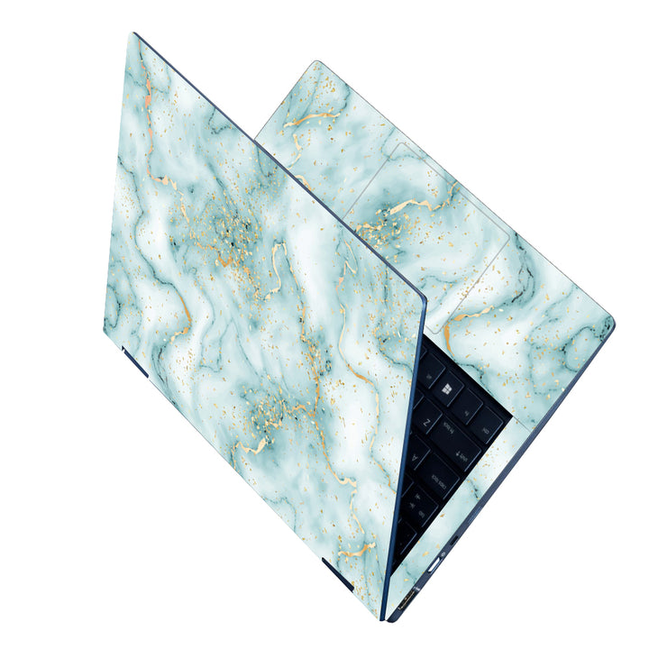 Laptop Skin - Golden Effect on Green and White Marble