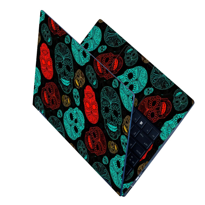 Introducing "Green Red Skull Art" Laptop Skins: Personalize Your Device with Style, Protection, and Your Desired Skin Coverage!