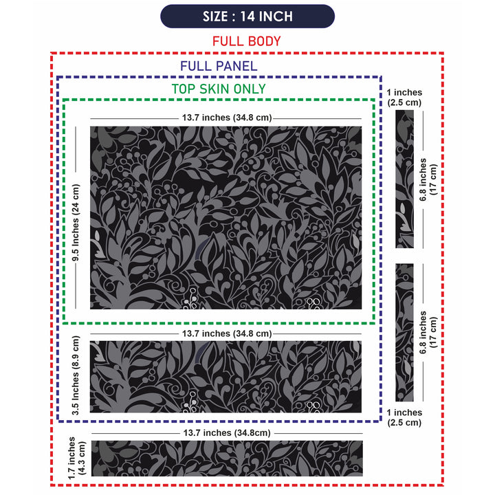 Introducing "Grey Leaves on Black" Laptop Skins: Personalize Your Device with Style, Protection, and Your Desired Skin Coverage!