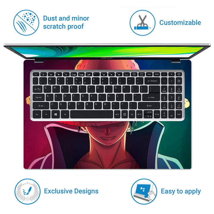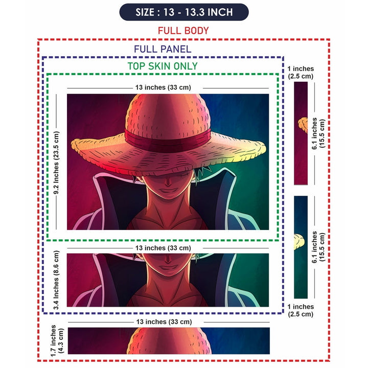 Introducing "Monkey D Luffy One Piece Multicolor" Laptop Skins: Personalize Your Device with Style, Protection, and Your Desired Skin Coverage!