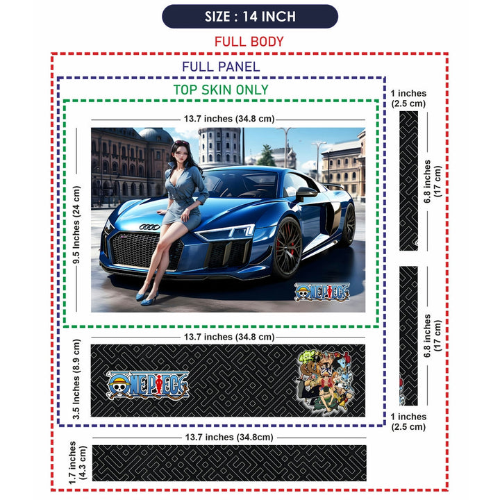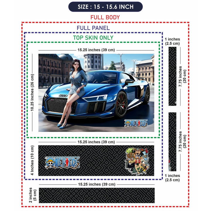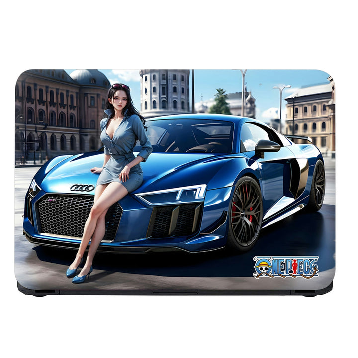 Introducing "One Piece Nico Robin with Blue Audi" Laptop Skins: Personalize Your Device with Style, Protection, and Your Desired Skin Coverage!