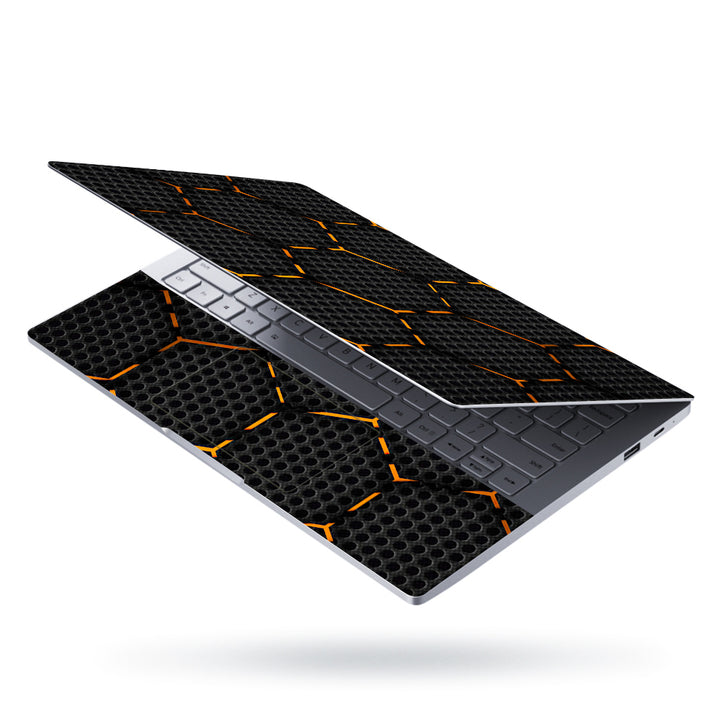 Introducing "Orange Neon Hexagon" Laptop Skins: Personalize Your Device with Style, Protection, and Your Desired Skin Coverage!