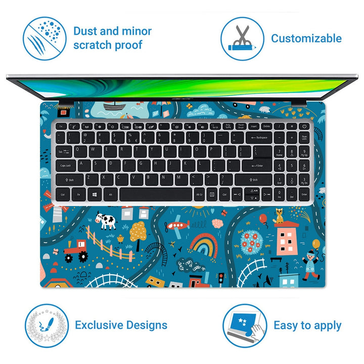 - Complete Protection: Our laptop skins provide full coverage for the top panel and the area around the trackpad, safeguarding your laptop from scratches, scuffs, and minor dings. They act as a protective layer, ensuring your device stays in pristine condition.