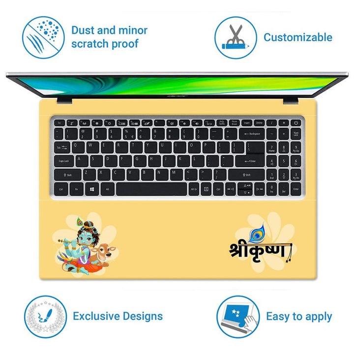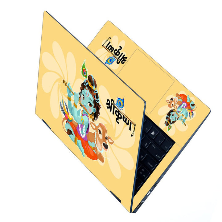 Laptop Skin - Shree Krishna Cow on Dark Cream