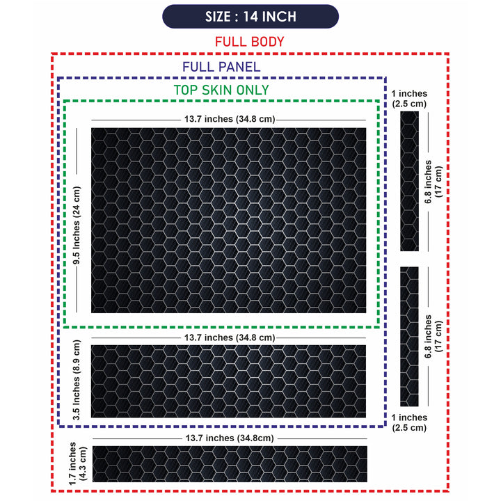 - Full Panel: Full Panel laptop skins provide coverage for the top panel and palmrest area, protecting the most visible parts of your laptop while adding a touch of style and personalization.