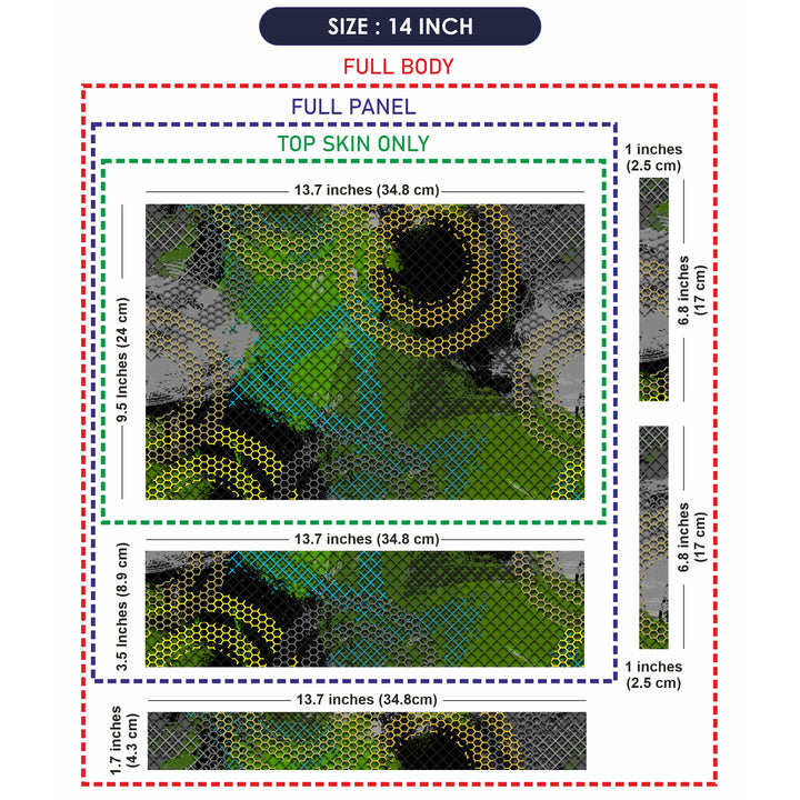 - Full Panel: Full Panel laptop skins provide coverage for the top panel and palmrest area, protecting the most visible parts of your laptop while adding a touch of style and personalization.