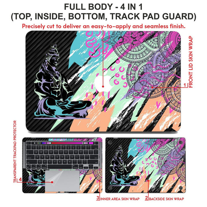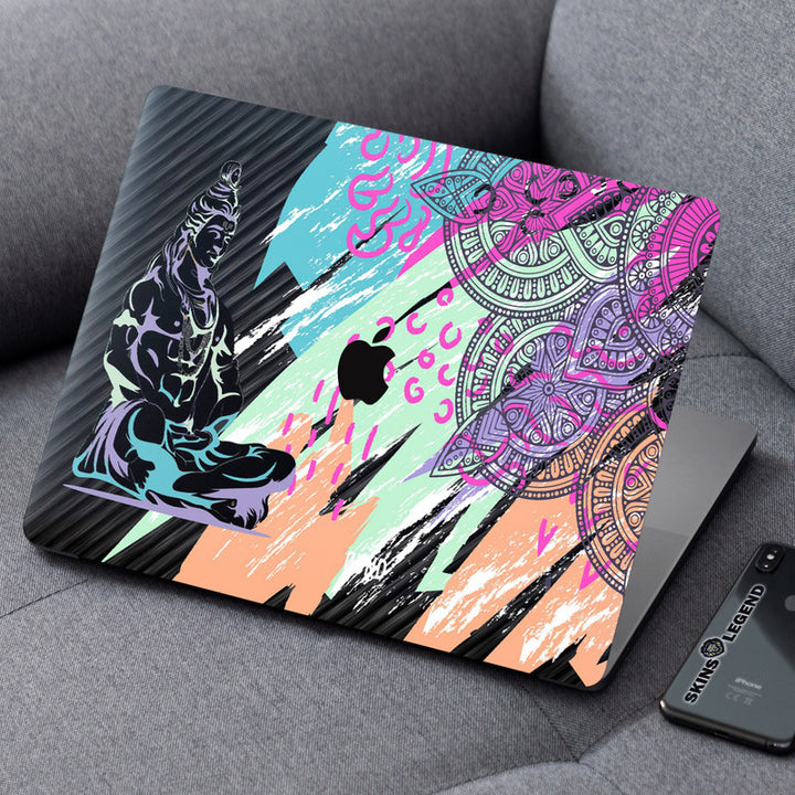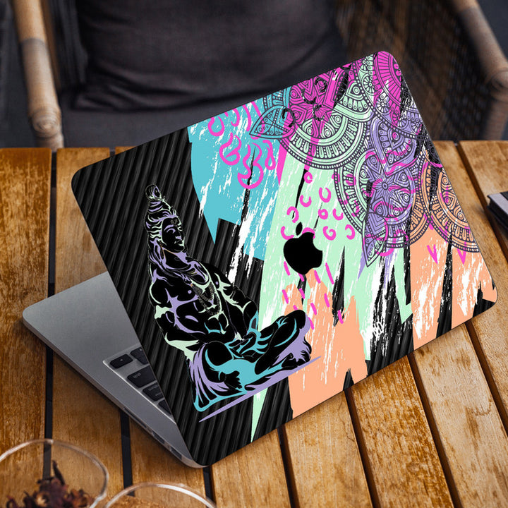 Laptop Skin for Apple MacBook - Shiva Meditation Colourful Mandala Art - SkinsLegend