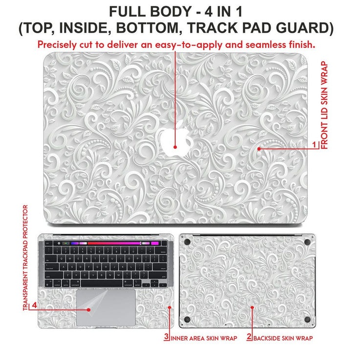 Laptop Skin for Apple MacBook - White Floral 3D Design